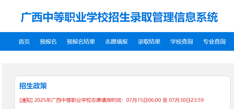 2025年廣西中等職業(yè)學(xué)校招生志愿填報(bào)系統(tǒng)即將關(guān)閉!今天是7月28日,距離最終截止時(shí)間7月30日23:59僅剩最后三天!